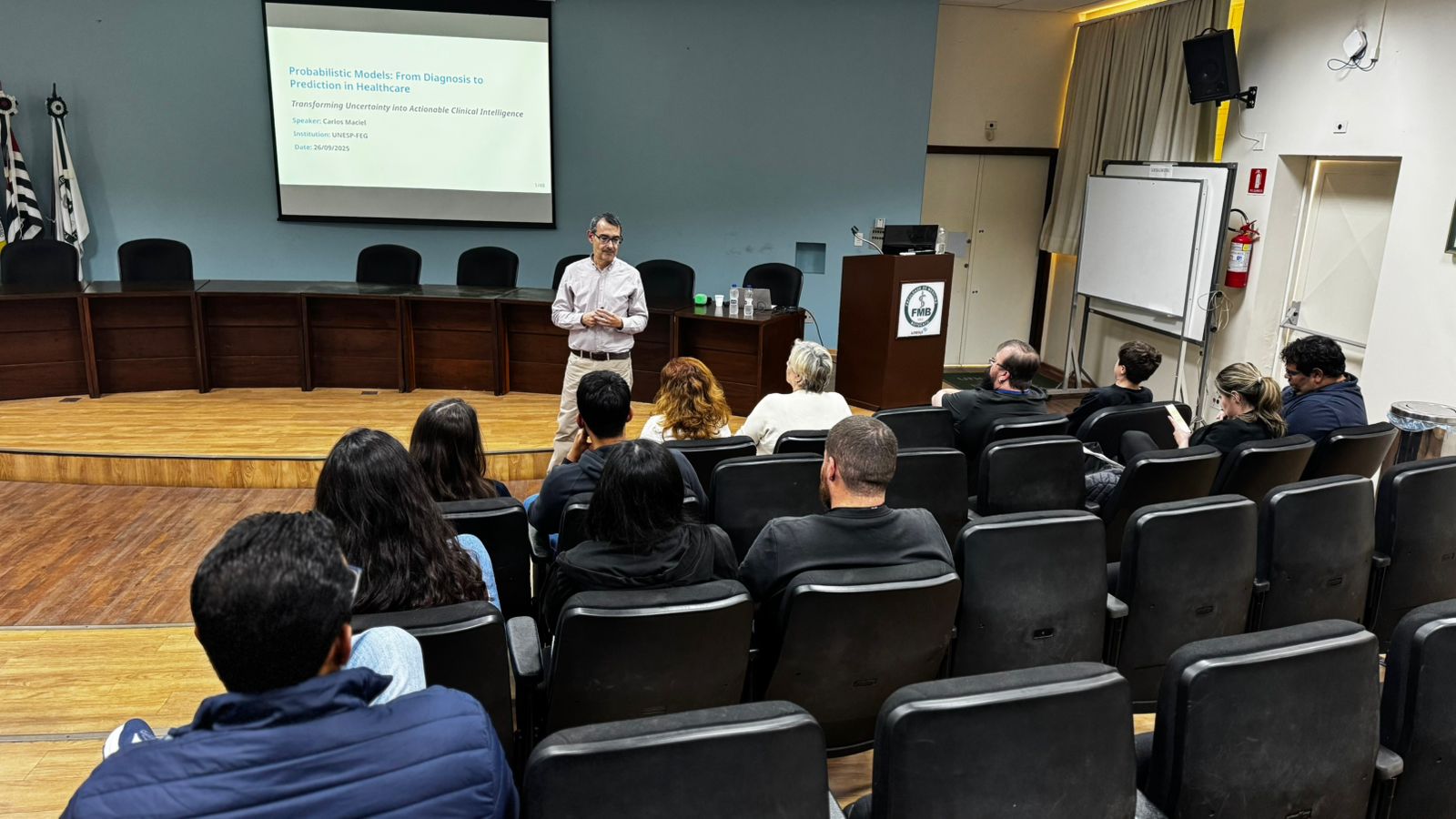 O Núcleo de Inteligência Artificial (NIA) do Hospital das Clínicas da Faculdade de Medicina de Botucatu – Unesp (HCFMB) realizou na última semana mais uma atividade de atualização científica, reunindo a comunidade para a palestra “Do diagnóstico à previsão: o papel dos modelos probabilísticos em saúde”.